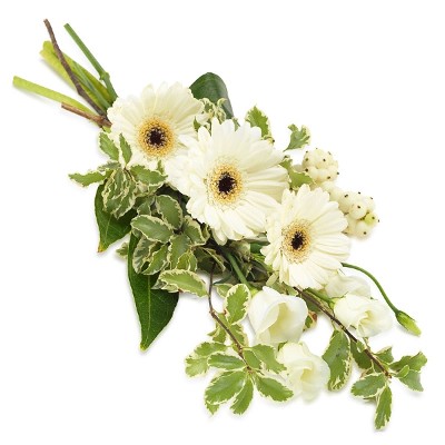 Zu Ehren eines geliebten Menschen wird unser symbolisches und preisgünstiges Trauergesteck von den erfahrenen Floristen von Euroflorist sorgfältig angefertigt. Dieses von Herzen kommende Arrangement enthält Blumen wie elegante weiße oder cremefarbene Gerbera, die mit passendem Grün akzentuiert werden. Trotz seiner bescheidenen Größe trägt dieses Blumengebinde eine aussagekräftige Botschaft des Mitgefühls. Jede einzelne Blüte vermittelt dein Beleid zu einem erschwinglichen Preis und schafft eine schöne Geste, die den geliebten Menschen mit Aufrichtigkeit und Fürsorge ehrt.